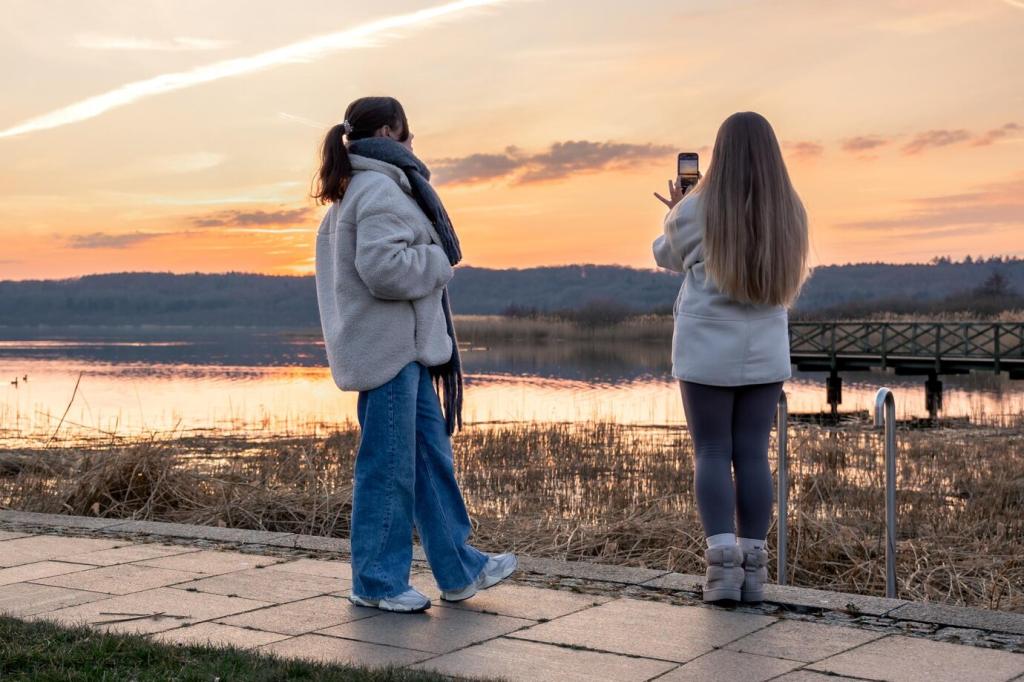 Select an aperture that balances sharpness and diffraction, often around f/7.1 to f/11 on many lenses. Estimate or reference hyperfocal distance to keep foreground and horizon crisp. Share how you verify depth of field on location before the light peaks.
